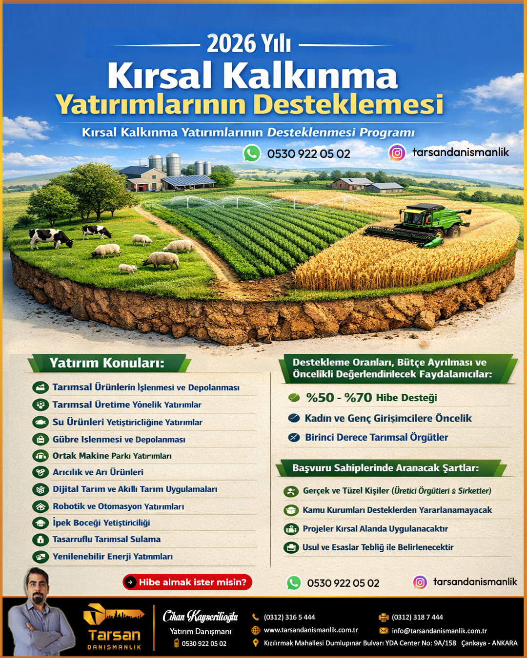 Devamını OkuKKYDP 2026 Yılı (Kırsal Kalkınma Yatırımlarının Desteklenmesi Programı) Yeni düzenlemeyle;📈 Hibe oranları %70’e kadar yükseltildi.👩🌾Kırsal kalkınma bütçesinin en az…